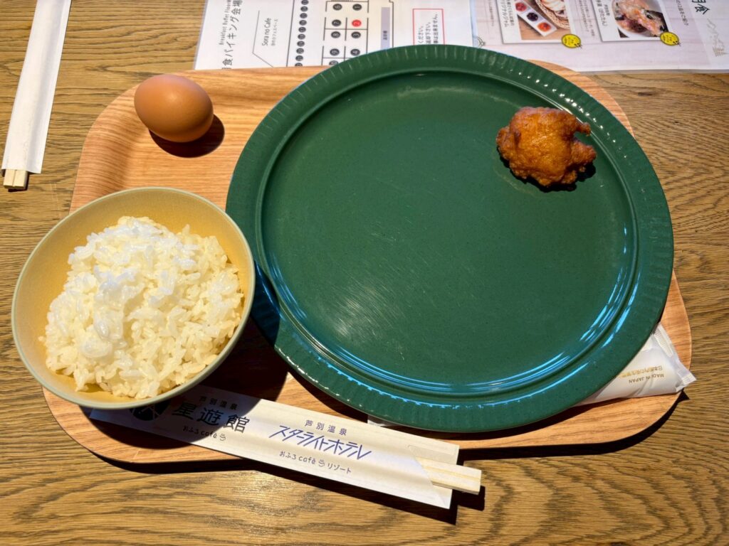 まずはご飯・生卵・唐揚げをいただくことにしました。
